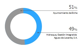 Aigües i Sanejament d'Elx S.A. es una empresa mixta participada en un 51% por el Ayuntamiento de Elche y en un 49% por Hidraqua, Gestión Integral de Aguas de Levante, S.A.